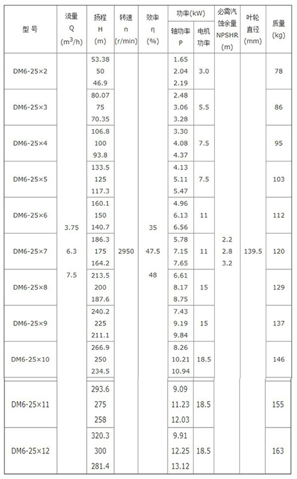 DM型多級離心泵具有揚(yáng)程高、功率小、效率高、性能范圍廣、運轉(zhuǎn)安全和平穩(wěn)、噪音低、壽命長、安裝維修方便等優(yōu)點??晒┹斔筒缓腆w顆粒(磨料),不含懸浮物的清水或物理化學(xué)性質(zhì)類似于清水的其它液體之用,也可通過改變泵的材質(zhì)(或泵過流部分的材質(zhì)),密封形式和增加冷卻系統(tǒng)用于輸送熱水、油類、腐蝕性或含磨料的介質(zhì)等。該系列泵系節(jié)段式多級離心泵,采用了國家推薦使用的高效節(jié)能水力模型,具有高效節(jié)能、性能范圍廣、運行安全平穩(wěn)、低噪音、長壽命、安裝維修方便等優(yōu)點;通過改變泵的材質(zhì)(或泵過流部分的材質(zhì))、密封形式和增加冷卻系統(tǒng),可輸送熱水、油類、腐蝕性和含磨料的介質(zhì)等。