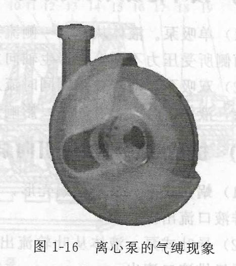 這種由于泵內(nèi)存有空氣造成離心泵不能吸液的現(xiàn)象稱為氣縛現(xiàn)象,如圖1-16所示。因此,離心泵在啟動前必須將泵體和吸人管內(nèi)灌滿液體或抽出空氣。