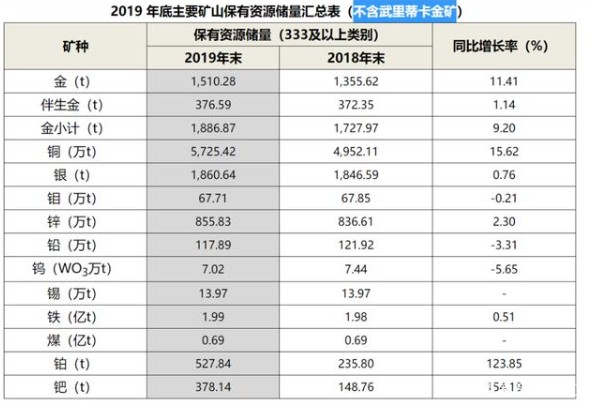 截止到2019年末,紫金礦業(yè)擁有5,725 萬噸的銅和974 萬噸的鋅(鉛),其中,銅資源量約為國內(nèi)總量的一半,鋅資源占全國的4.56%。